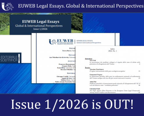 EUWEB Legal Essays publishes two online issues per year (winter and summer) of articles exploring particularly the external dimension of immigration, the fight against transnational crime, judicial and police cooperation, and the protection of fundamental rights, promoting a multidisciplinary approach in legal studies.